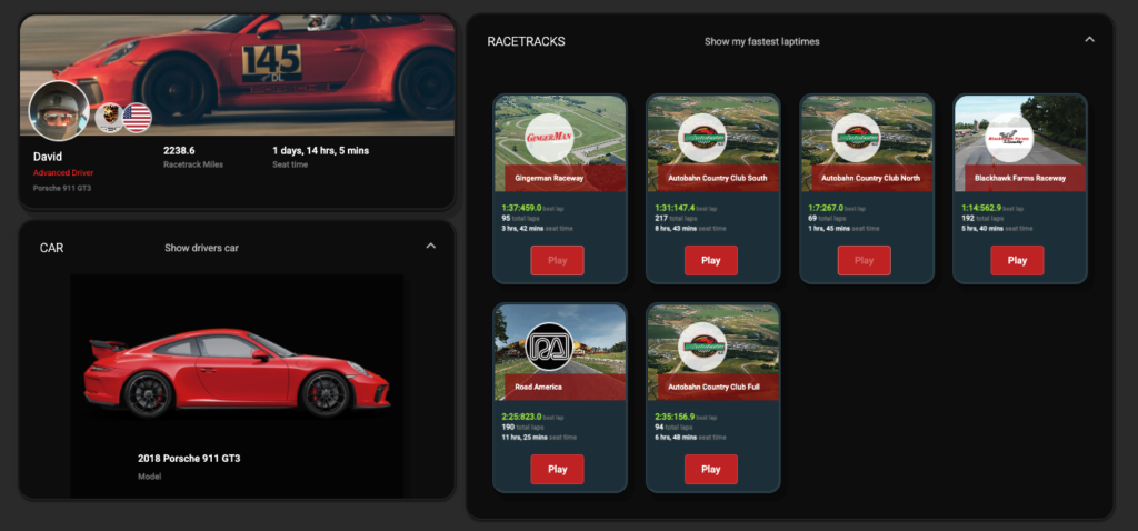 Your presence and time spent on various racetracks. This includes lap times and YouTube videos as a proof for each lap time.